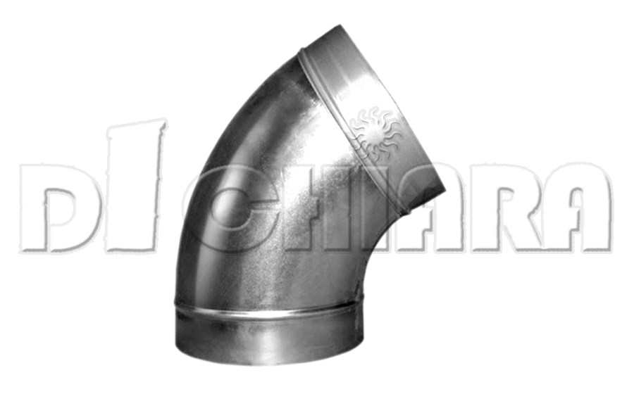 Curva complementare in lamiera d’acciaio zincato. Viene utilizzata per raccordare ortogonalmente una tubazione ad una deviazione.
